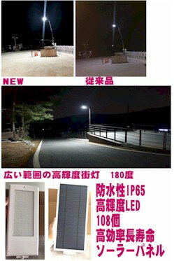 無電源どこでも自動点灯式ソーラー街灯 高輝度広範囲大きなセンサーソーラーライト高輝度LED108個搭載の高輝度2100ルーメン広範囲360度で明るく照らします。